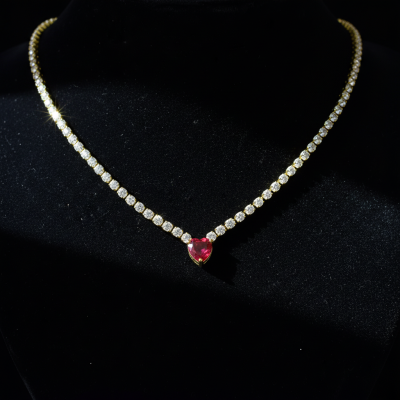 35% OFF ♡ Ruby Heart Tennis Necklace – Anti Tarnish Gold Plated Sale price: ₹2,139.00 Was: ₹3,299.00 Add to Cart